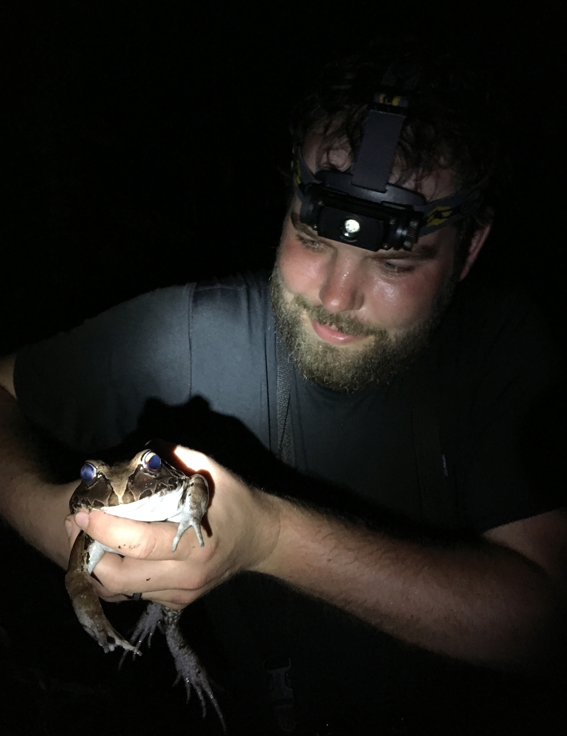 | Smoky Jungle Frog (Leptodactylus pentadactylus) and Homo sapiens loco - Sani Lodge, Sucumbios Province, Ecuador |