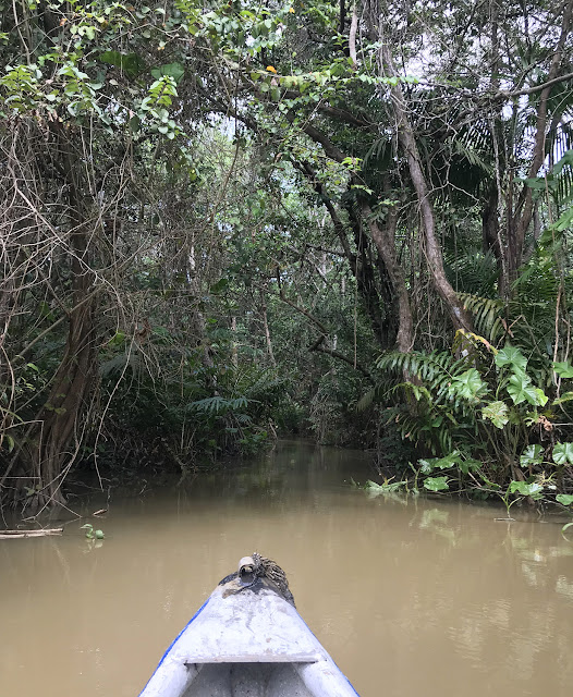 For 50,000 pesos (around 16 Canadian dollars), our boatman paddled us down a tranquil stream with mangrove branches snaking up into the sky above us. We peered at promising puffbird perching places as we paddled, the only sounds being the gentle lapping of the water against the boat.